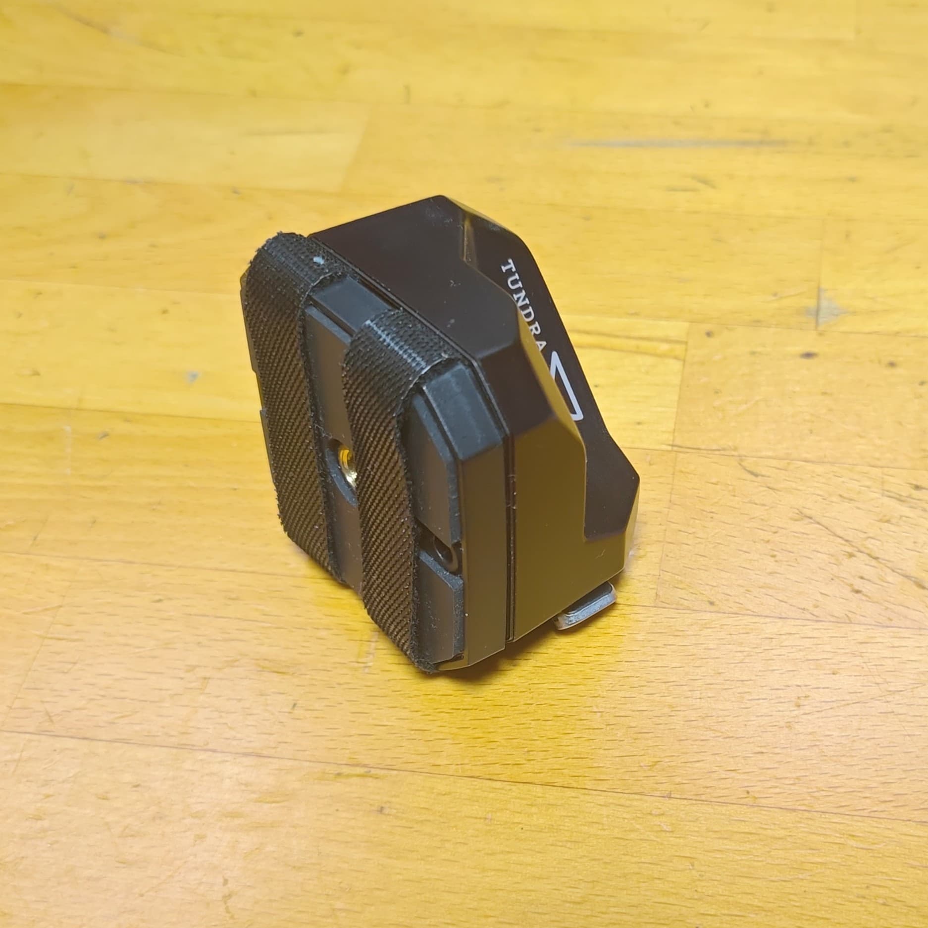 Tundra trackerにはバックプレートがあるため、トラッカー側のマジックテープはバックプレートでテープを挟み込んで固定しています。